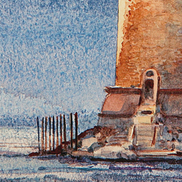 The original Morris Island Lighthouse was built in 1767 and was later destroyed during the Civil War. Now the tower that replaced it in 1876 is also threatened. Damaged by hurricanes, and by an earthquake in 1885, the lighthouse continued to function until the early 1960s when erosion began to wear away the surrounding land. Today Morris Island tower stands on the brink of ruin, it’s black and white bands faded and its foundation awash in the tides.